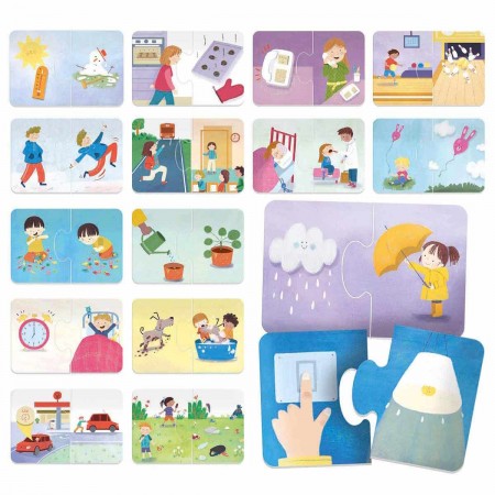 A game of logic in which children observe and compare everyday objects and situations. Children can arrange the puzzle pieces according to correlations. They will learn to understand the cause-and-effect relationships between objects and situations.