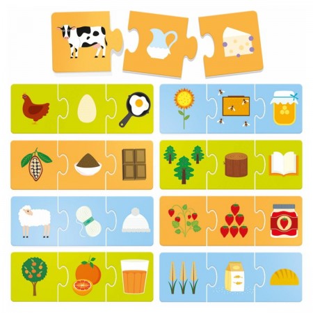 This engaging activity encourages naturalistic intelligence by helping little learners discover where everyday things come from?whether it?s food, materials, or objects. With 9 three-piece puzzles, children will develop logical thinking and curiosity as they match each item to its source. This hands-on approach also strengthens logical-mathematical intelligence, making learning fun and interactive.