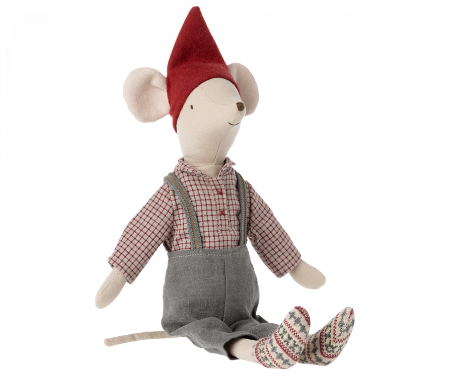 A medium size mouse dressed in cozy Christmas clothes ready to celebrate the wonderful days of Christmas.