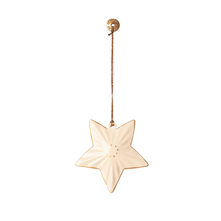 Decorate your home and Christmas tree with Maileg's range of metal ornaments. They are beautiful hand-painted and decorated with festive string. Mix and match to create a personal collection. Measures 6cm.