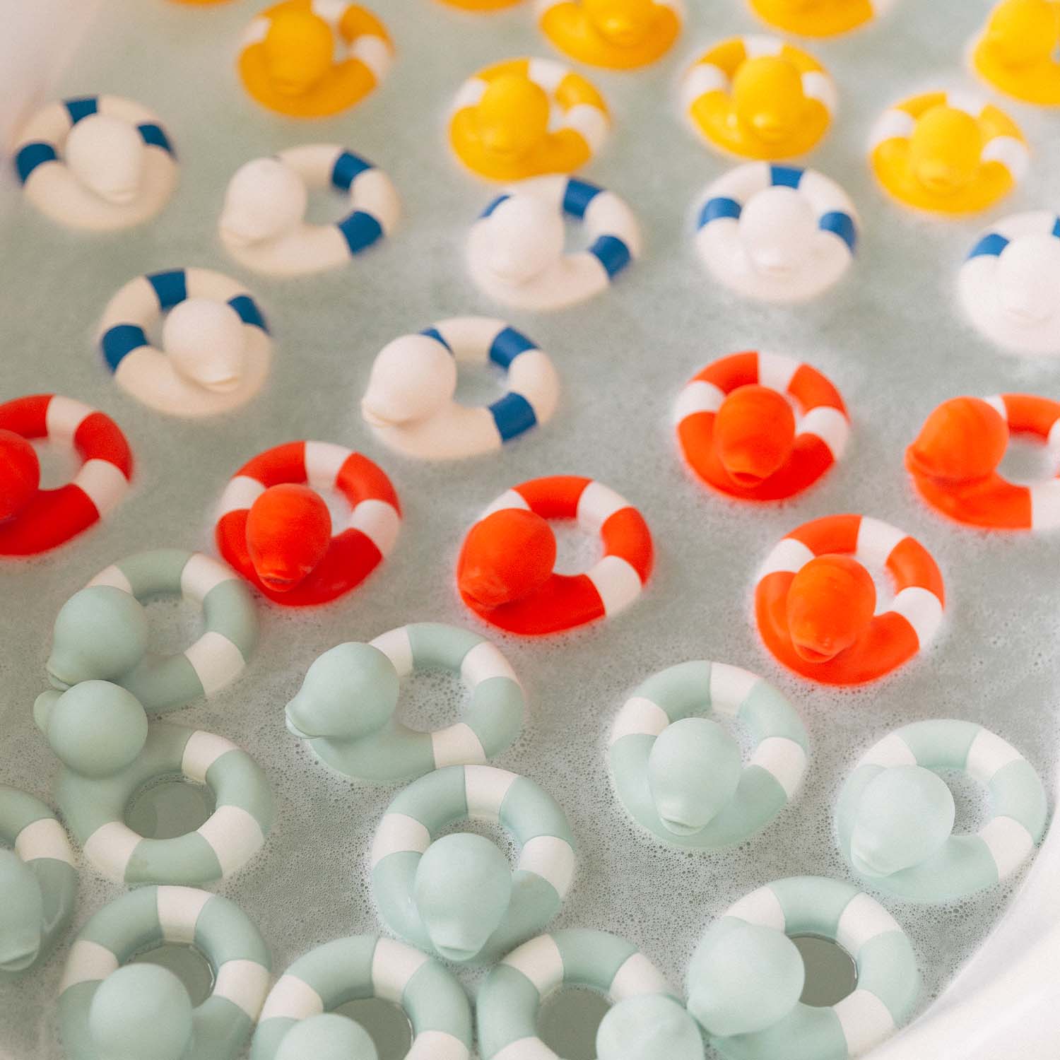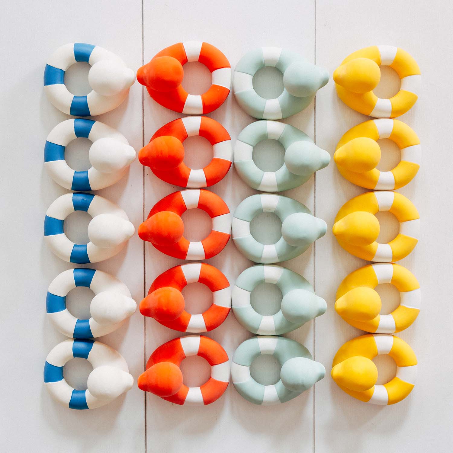 Inspired in the classic lifeguard ring, Flo the Floatie is the new modern-twisted Oli&Carol natural rubber duckie. It is ready to splash around with kids during bath time! Also perfect as a baby teether, sensory play toy and decorative object. Made all in one piece with no hole making it 100% bacteria-free.