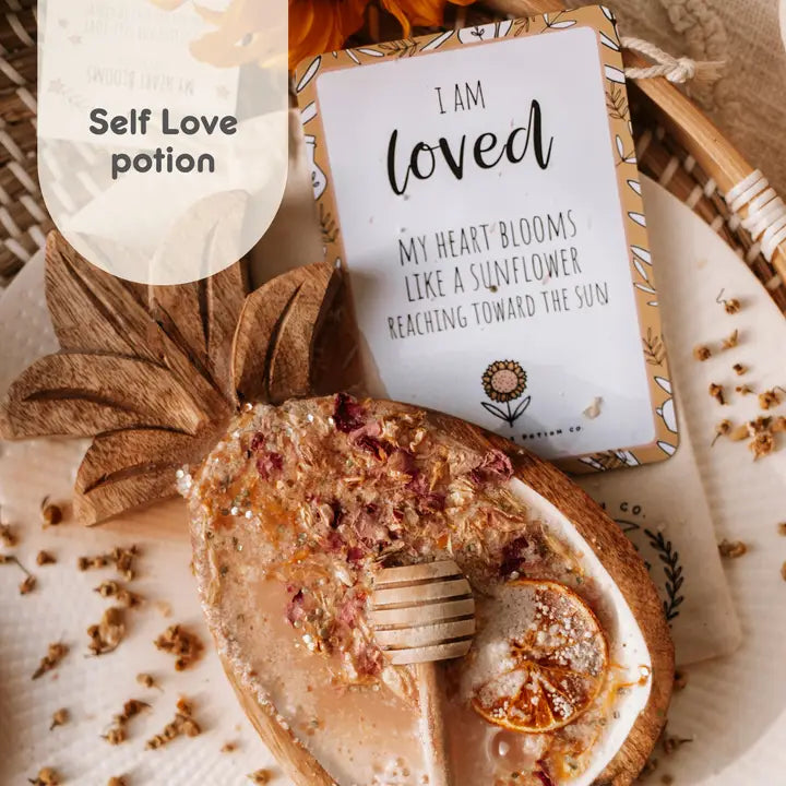 MY HEART BLOOMS - A Potion for self love and to give love to others. Sunflowers are a symbol of love, light and positivity. Like a sunflower blooms from a tiny seed, so can your heart grow in love for yourself. This potion will help you to harness the glowing power of the sun and the sunflower, helping to strengthen the love you have for yourself and for your loved ones.